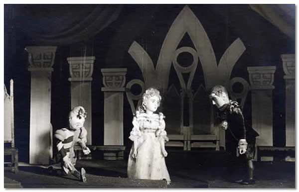 Nr 51 (286) Noorsooteater: “Kristallkingake” (T. Gabbe, 1946). Nukud vasakult: Narr (F. Veike), Tuhkatriinu (A. Mägi), Prints (R. Kuremaa). Kuj. A. Saldre, nukud L. Tui. /Foto: O. Juhani/