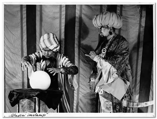 Nr 61 (286) Noorsooteater: “Aladini imelamp” (N. Gernet, 1948). Kuj. U. Martin. Stseen lavastusest: (vasakult) Ennustaja – A. Kivirähk, Vesiir – F. Veike.