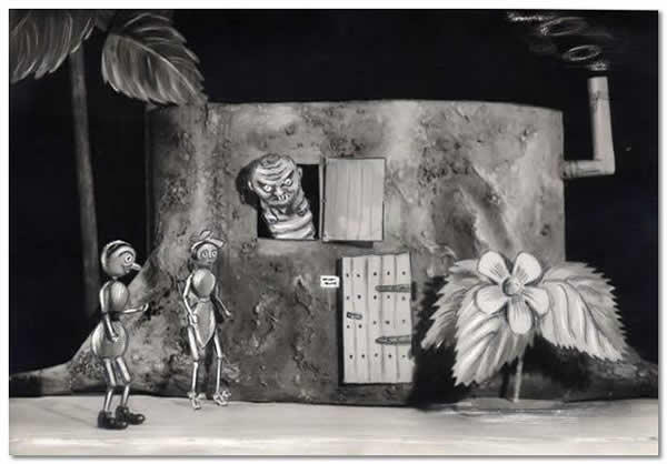 Nr 73 (286) Ugala: “Sipelgas ja rohutirts” (E. Toona, 1948). Stseen lavastusest. Kuj. E. Reier.