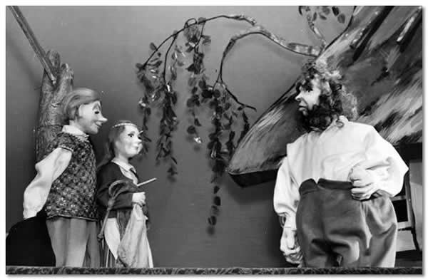 Nr 92 (286) ERN: “Kaval-Ants ja Vanapagan” (J. Kangilaski, 1954). Kuj. R. Laidre, nukud H. Vilms (vasakult): Kaval-Ants (R. Kuremaa), Sauna-Mari Miina (M. Orgussaar), Vanapagan (B. Mitt). /Foto: A. Alla/