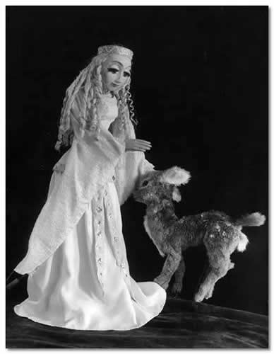 Nr 100 (286) ERN: “Kuldkihar” (J. Kainar, 1957). Kuj. R. Laidre. Stseen lavastusest: nukk Kuldkihar (H. Raa).