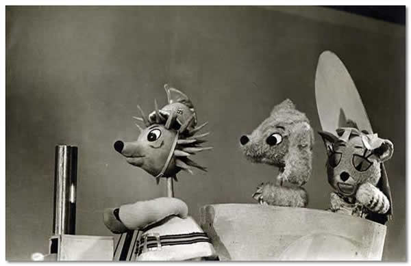 Nr 120 (286) ERN: “Vihavaenlased” (U. Leies, 1962). Kuj. R. Laidre. Nukud vasakult: Siil (H. Karro), Kutsikas Kiki (V. Luup), Kassipoeg Miki (I. Kivirähk).