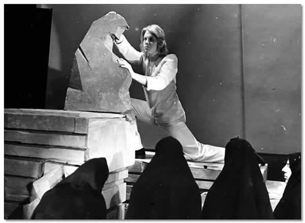 Nr 165 (286) ERN: “Kalevipoja võitlus sarvikuga” (J. Kangilaski, 1973). Kuj. K.-A. Püüman. Stseen lavastusest: Kalevipoeg – U. Ott.