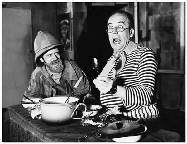 Nr 239 (286) ERN: “Vanamehed seitsmendalt” (A. Kivirähk, 1992). Kuj. R. Lauks. Stseen lavastusest: (vasakult) Voomer – V. Kangur, Nikolaus – H. Toompere. /Foto: V. Salupuu/