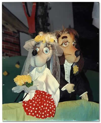 Nr 242 (286) ERN: “Koera pulm” (J. Põldma, 1995). Kuj. H. Ernits. Nukud vasakult: Murija (A. Vaher), Rommi (M. Kampus). /Foto: V. Valgepea/