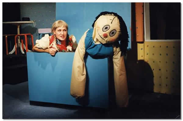 Nr 253 (286) ERN: “Sipsik” (E. Raud, R. Toots, 1997). Kuj. K. Kivi. Stseen lavastusest: (vasakult) Anu – A. Semjonova, Sipsik – M. Tabor. /Foto: T. Malsroos/
