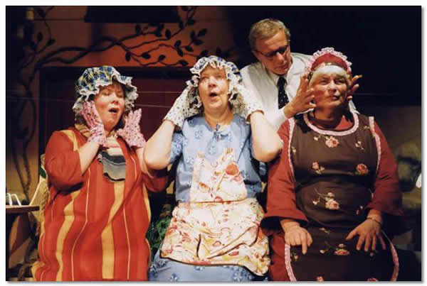 Nr 264 (286) ERN: “Viplala” (A. M. G. Schmidt, R. Toots, 1999). Kuj. K. Mende, M. Kõrtsini, M. Nurm. Stseen lavastusest: (vasakult) T. Pennie, I. Aru, T. Kreen, H. Laas. /Foto: T. Talivee/